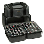 • To udtrækkelige skuffer: Nederste del af tasken indeholder to "skuffer", som hver kan rumme op til 40 stk. Naillak gellak flasker (15ml), hvilket giver plads til i alt 80 flasker. Disse skuffer har indbyggede "håndtag" for nem håndtering og er udstyret med bløde "puder" til at beskytte dine flasker, som kan justeres i størrelse for optimal tilpasning.