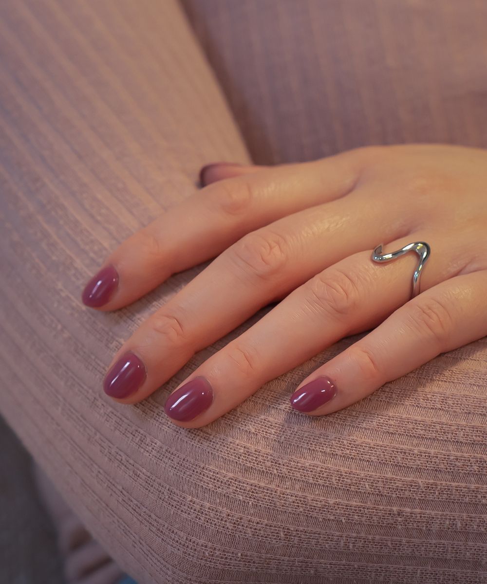 Plum Obsession er en støvet blommefarve med rosa undertoner, der lander et sted mellem mørk rose og moden frugt. Den føles feminin uden at være for sød, og skifter stemning med lyset – fra frisk bærfarve til dybere efterårstoner.