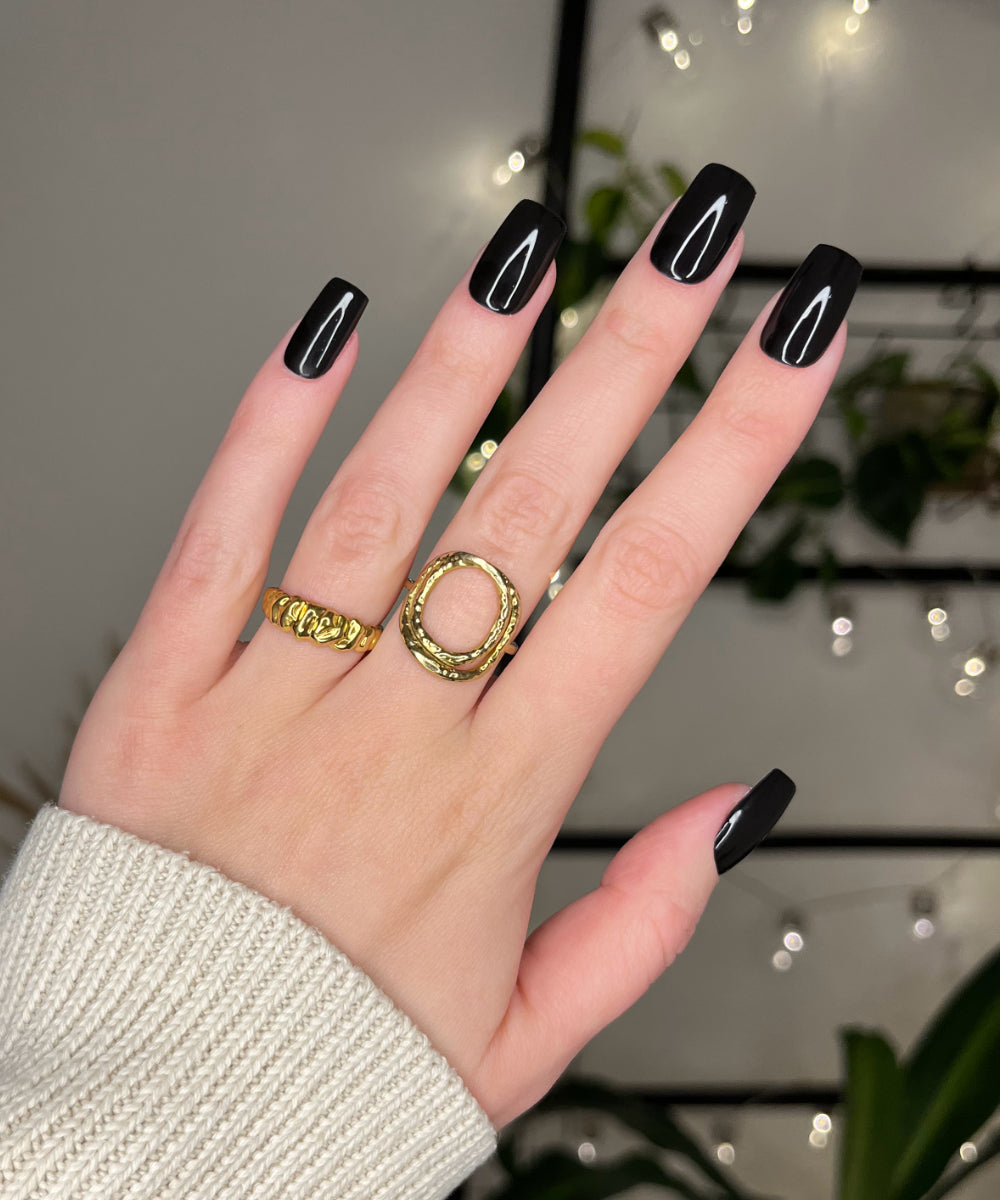 Midnight Black er Naillaks kulsorte gellak – det er næsten et must-have, hvis du er interesseret i nailart eller godt vil i gang med det. Denne farve dækker neglen fuldstændig i ét enkelt lag, netop fordi den er sort og dermed rig på pigment. Derfor er den også rigtig god til nail art, da du aldrig har lyst til at skulle tegne streger op igen, når du først har lavet den. Midnight Black er også rigtig god som base til diverse glimmergellakker, som f.eks. Grey Diamond, Pink Diamond og Unicorn Glitter. Den sorte base får virkelig farverne til at poppe! Selvfølgelig kan du også bruge Midnight Black for sig selv, for de sorte negle har altid været et udtryk for elegance og luksus – og det vil du jo aldrig sige nej til.