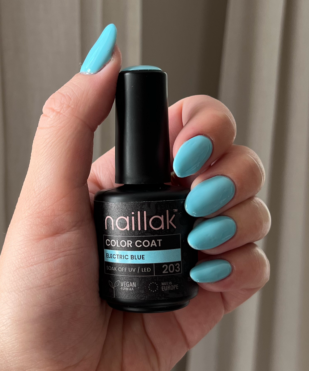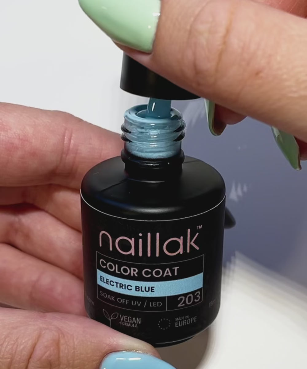 Electric Blue er en klassisk havblå - eller himmelblå - gellak. Farven minder nemlig om den flotte blå farve, som havet og himlen har i sommermånederne. Det er en klar lyseblå farve, der dog er mørkere end vores pastel, Baby Blue, og mindre gennemsigtig end vores transparente blå farve, Cinderella. Hvis du er på udkig efter den perfekte lyseblå - men stadig blå - gellak, er Electric Blue lige noget for dig. Electric Blue vil også være perfekt til vinterhalvåret, selvom den leder tankerne hen på sommeren. Hvis du tænker i vinter-trends, kunne den være perfekt til vinter-nail art, som istapper, vinterhimlen eller noget helt tredje. Electric Blue er en alsidig gellak, der passer til det hele!