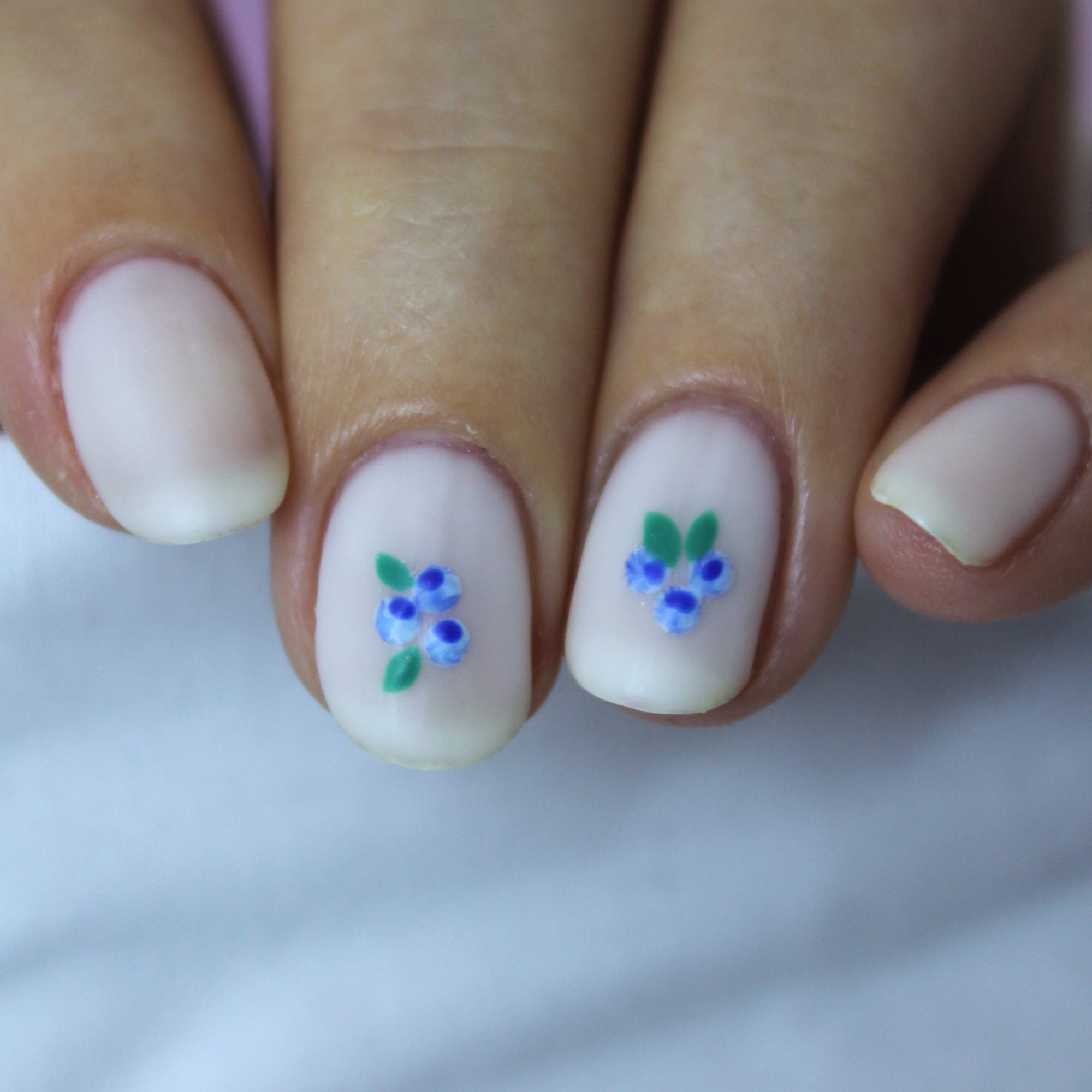 De første sommernegle, vi skal se på, er de her små blåbær. De er søde og ser sprøde og sommerlige ud - perfekt til en tur på sommerferie, eller hvis du bare vil have lidt lækkert på neglene.