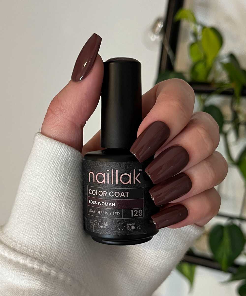 Boss Woman er en perfekt farve til efterår og vinter. Det er en mørk aubergine-bordeaux gellak med et hint af brunlige, varmere undertoner, så huden ikke kommer til at blegne i den mørke tid. Boss Woman er heldækkende i et enkelt lag, fordi det er en mørk gellak – du kan altid lægge et ekstra lag, hvis du gerne vil intensivere farven endnu mere. Boss Woman er også en af de farver, der passer både til hverdag, med den mere brunlige base og neutrale farve, men den passer også rigtig godt til fest, hvor den giver et flot og elegant udtryk – den stjæler ikke spotlyset fra dit tøj og makeup, men den er stadig med til at fuldende dit look.