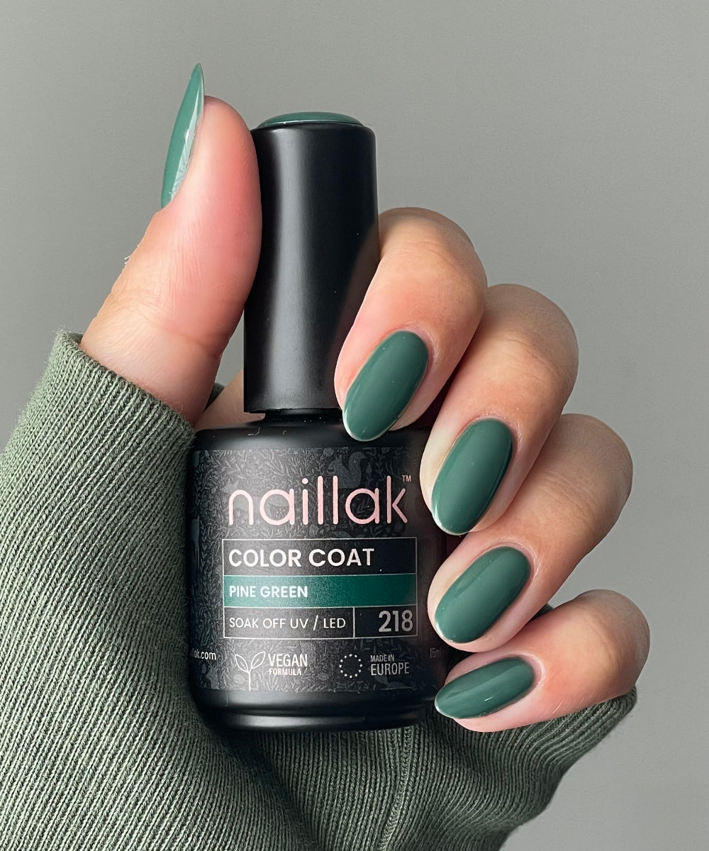 Hvis vi siger grannåle, hvilken farve tænker du så på? Svaret er højst sandsynligt noget, der minder om vores Pine Green. Det er en flot støvet mørkegrøn gellak, der måske også kan blive kaldt en dæmpet grøn. Derfor er det også en god farve at gå efteråret og vinteren i møde med. Nogle mørkegrønne lakker kan næsten se helt sorte ud, når du først har lagt to lag, men Pine Green forbliver den smukke støvede grønne gellak både i lys og skygge. Derfor kan du beundre den milde farve både dag og nat, hvilket også er en fordel i de mørkere vintermåneder. Den er også ideel, hvis du skal bruge en god grøn farve til lidt julemotiver på neglene, så er det nærmest som at få et grantræ på neglene!